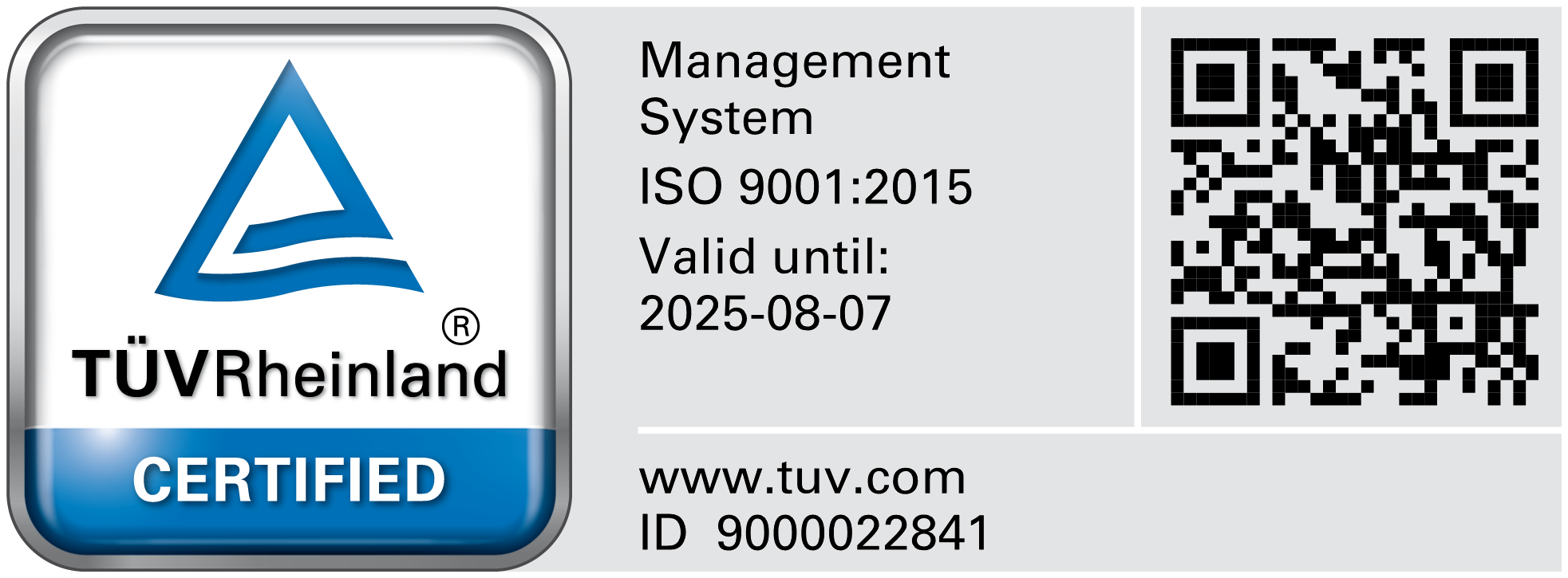 Proof has been furnished by means of an audit that the requirements of ISO 9001:2015 are met. The certificate is valid from 2022-08-08 until 2025-08-07.